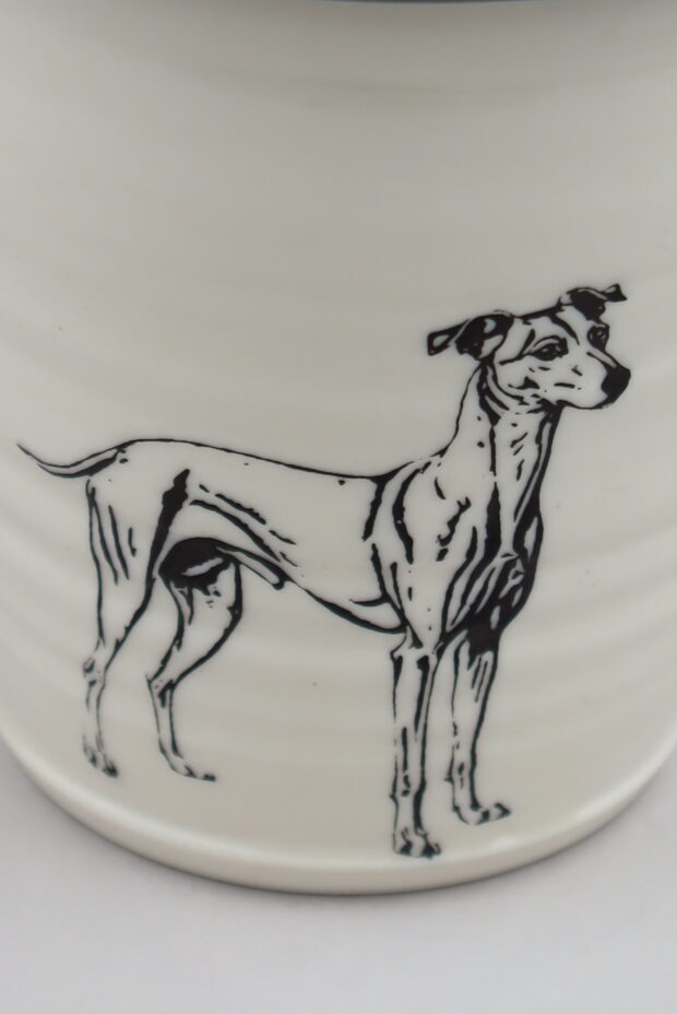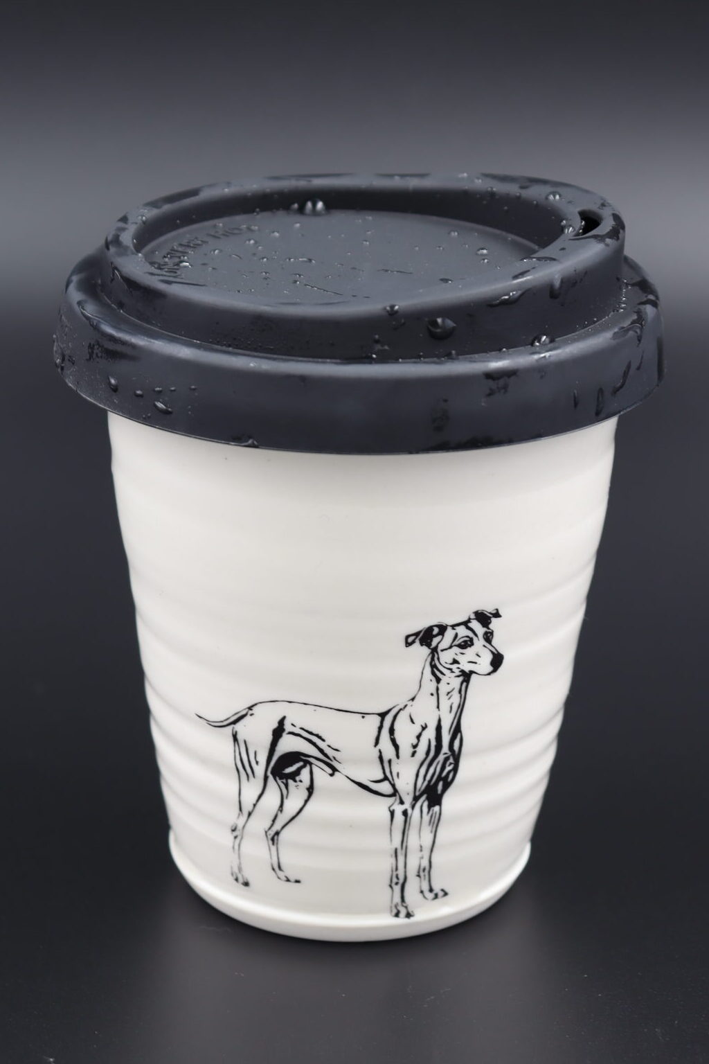 Frankie Harker Greyhound Keep Cup is a unique handcrafted cup featuring an antique greyhound image. Made from stoneware clay with a high porcelain content, each cup is created using traditional methods. Greyhounds are gentle, low-maintenance pets suitable for indoor living.